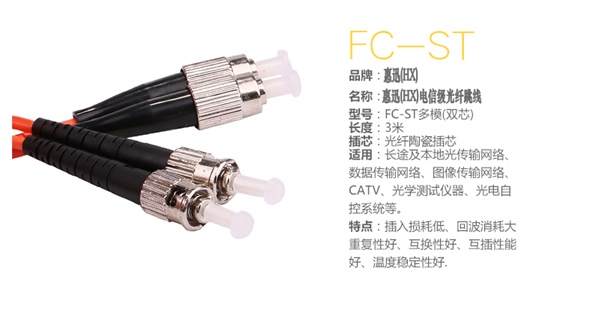 FC-ST光纖跳線是滿足綜合布線系統設計要求的高速、高性能、室內跳線。