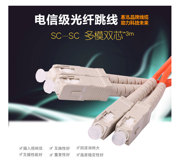 惠迅 SC-SC室內光纖跳線連接頭采用壓-拉式設計,易插拔。