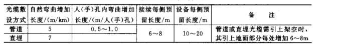 表 光纜敷設規定的預留長度