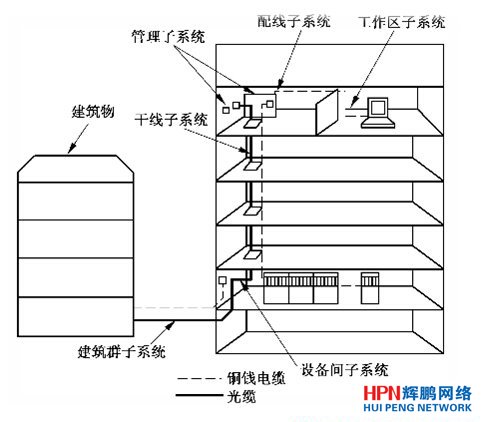 綜合布線系統的組成,可以分為6個子系統,即建筑群子系統、干線(垂直)子系統、配線(水平)子系統、管理子系統、設備間子系統和工作區子系統。現分別介紹如下。