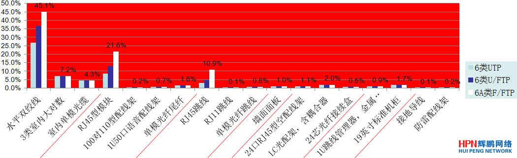 想要完美解決綜合布線產品的性價比問題,首先需要了解布線材料的價格構成。曾松鳴先生介紹,目前,中國的布線產品有7類:纜線、連接器件、外部跳線、強制安裝的面板、機房安裝的配件架、配件架固定的機柜或是箱體,最后給每一根線和橋架起名字,并進行管理,而它們和環境相組合就變成了現在的中國布線產品。根據研究結果顯示,纜線的價格水平最高,模塊排第二位,第三位是跳線,對于6類屏蔽而言,跳線排得非常低。如果想進行優化,就需要把前面幾種材料的價格降下來,即價高者降價。