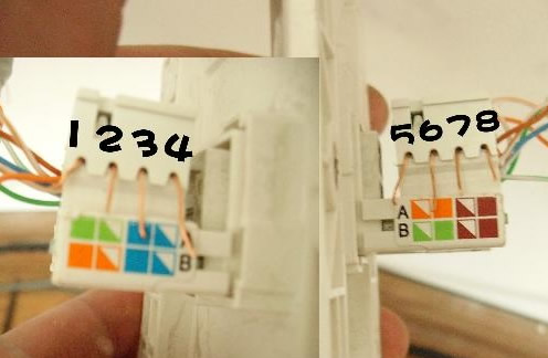 T568B的接法:橙白、橙、綠白、藍、藍白、綠、棕白、棕;