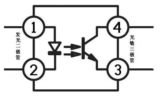 ( ALT標簽: 光電耦合器之內部結構圖 雙發光二極管輸入 三極管接收型 4腳封裝)