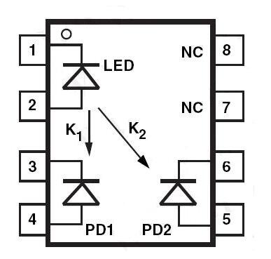 (ALT標簽:光電耦合器之內部結構圖 雙二極管接收型 6腳封裝)