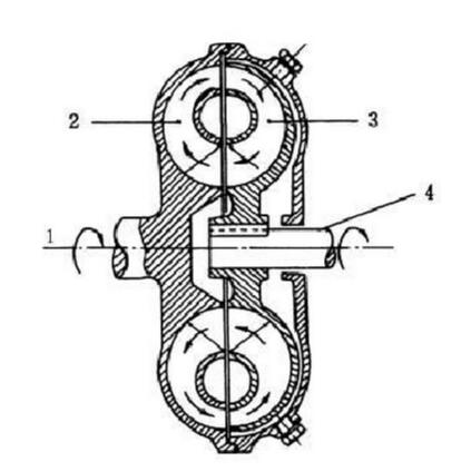 液力耦合器結構注解:1-輸入軸,2-泵輪葉輪,3-渦輪葉輪,4-輪出軸