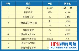 表1 無鹵阻燃護(hù)套的主要性能指標(biāo)