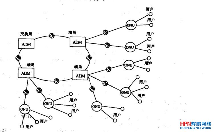 由SDH設(shè)備組成的環(huán)型網(wǎng)+ONU組成的星型網(wǎng)結(jié)構(gòu)。業(yè)務(wù)經(jīng)過(guò)SDH環(huán)傳輸后,再經(jīng)ONU組成的星型網(wǎng)分配到各個(gè)用戶。如果某些甩戶需要的帶寬很