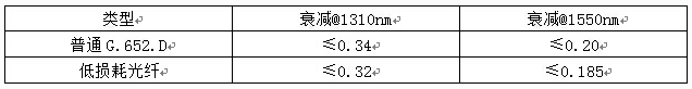 低損耗光纖不改變光纖的波導結構,完全兼容G.652.D標準,其工藝主要是通過改善光纖內部的應力從而優化瑞利散射來降低損耗,因此相比于普通G.652.D,具有更低的衰減性能,而且價格也與普通的G.652.D光纖相當。具體衰減指標如下表。